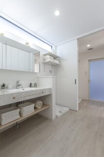 共働き世帯に嬉しい回遊動線や横並びキッチン、アーチ開口が可愛いパントリーなど、家事ラクの工夫も満載。寝室のWICに忍ばせたウィリアム・モリスの壁紙や、自分時間に浸れる隠れ家のような書斎など、2階空間も日常を彩るオリジナルなエッセンスが満載。デザインもゆとりも妥協しない、毎日の暮らしが心地よくなる住まいです。