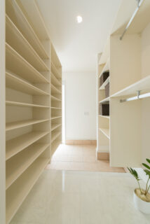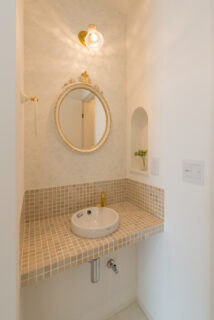 仕事のはかどりそうなクールな書斎はご主人、白やゴールドの上品な要素を取り入れたラバトリーは奥さまと、それぞれのお好みはこだわりのスペースに取り入れられています。