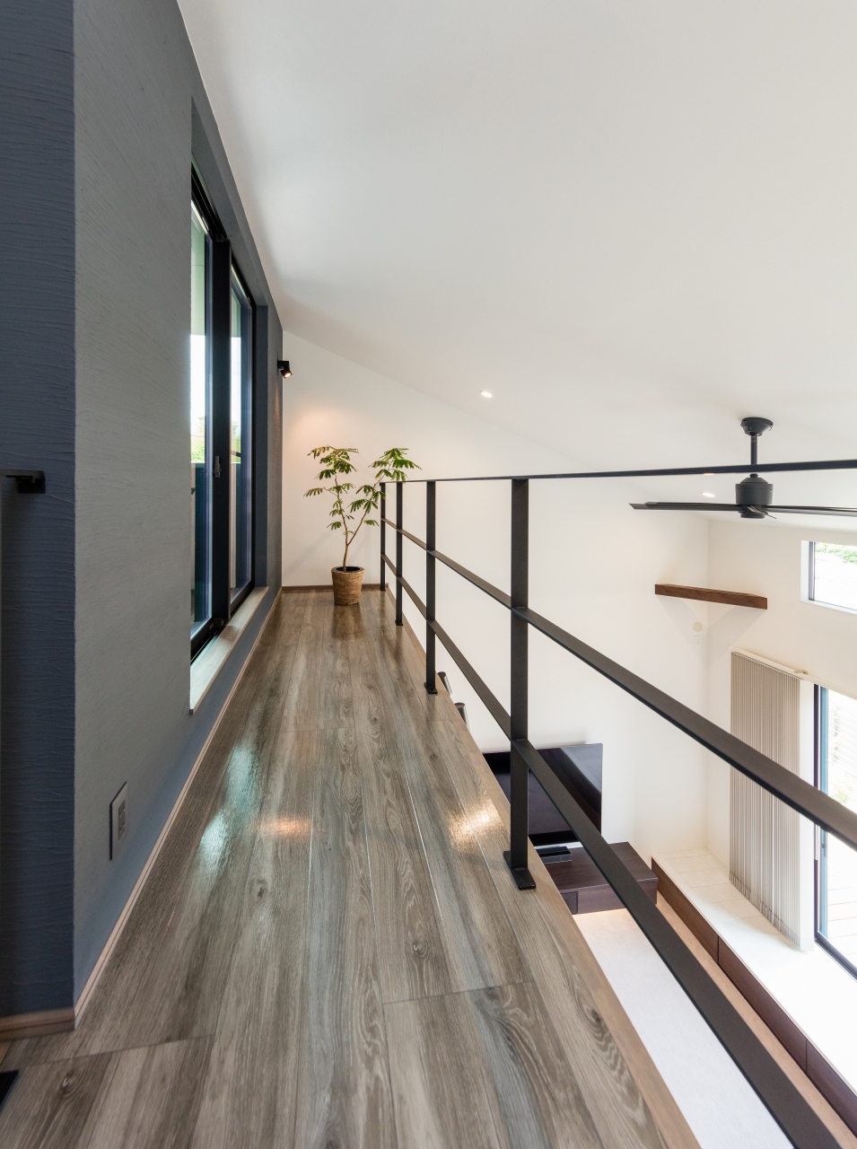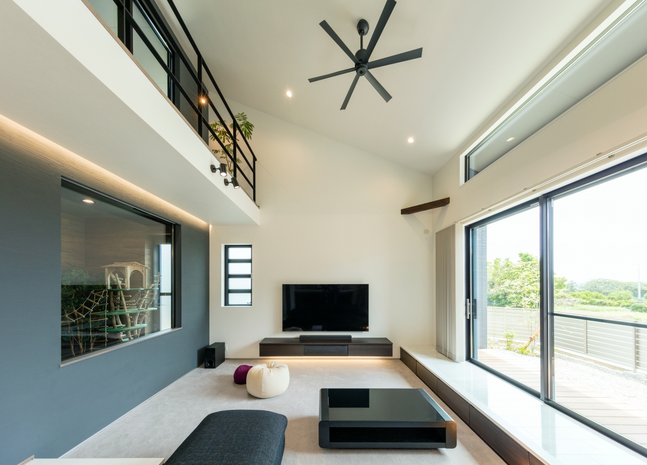 また、御施主様が飼育している小動物専用の飼育ルーム+作業室も併設しているのもこの住まいの大きな特徴です。リビングルームにレイアウトされた大きなガラス窓からのぞくのは、実は中庭ではなくペットたちが元気に動き回れる専用ルーム。自由設計のメリットを最大限に活かして、人とペットが仲良く暮らせる住空間を実現しています。