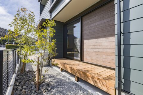 異なる素材同士が互いをさりげなく引き立て合う、シンプルで味わい深い住まいです。