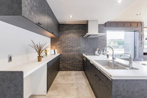 インテリア・エクステリアはヴィンテージな印象とモダンな印象を併せ持つ、ダークな色合いを選ばれました。