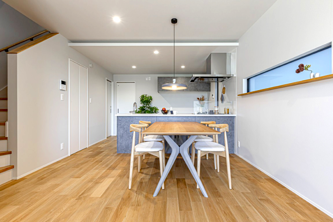 ・LDKには各棟異なる樹種の無垢フロアを採用!毎日ほっと落ち着く空間をつくります。